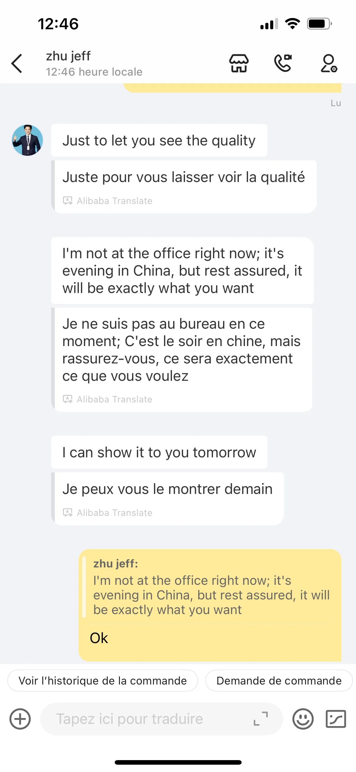 Le lendemain il m’envoie exactement la photo réelle de l’emballage que je lui ai demandé(9oz-98) et m’a rassuré que c’est disponible