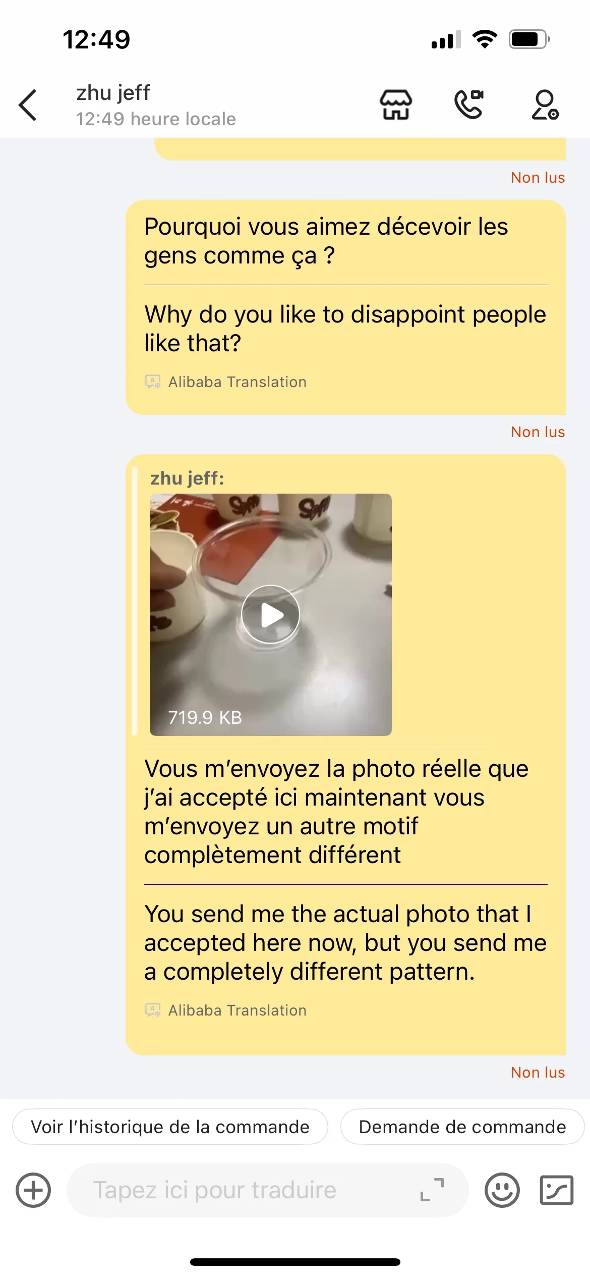 J’ai passé ma commande et je l’ai rappelé encore plusieurs fois de respecter la contenance et l’imbecile m’a dit ok sachant très bien que c’est une autre chose il veut envoyer